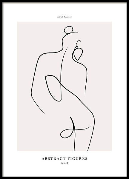 Handpicked Abstrakte Line-Art-Illustration eines Körpers in Schwarz auf einem beigen Hintergrund mit Text darüber und darunter. Wenn du sichergehen möchtest, dass dein Zuhause trendig bleibt, ist Line-Art ein Must-have! Kombiniere dieses Poster mit Abstract Figures No2 oder Abstract Figures No3 für ein perfektes Paar.