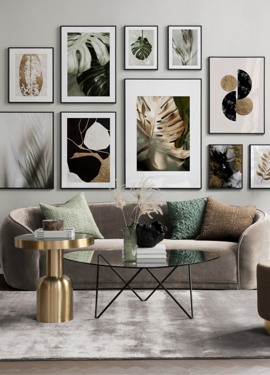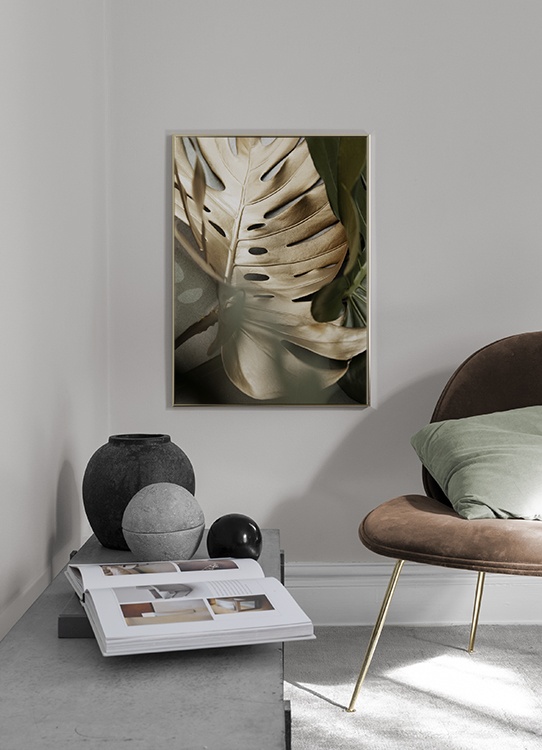 Golden Monstera leaves Poster in der Gruppe Poster / Botanik / Monsteras bei Desenio AB (13573)