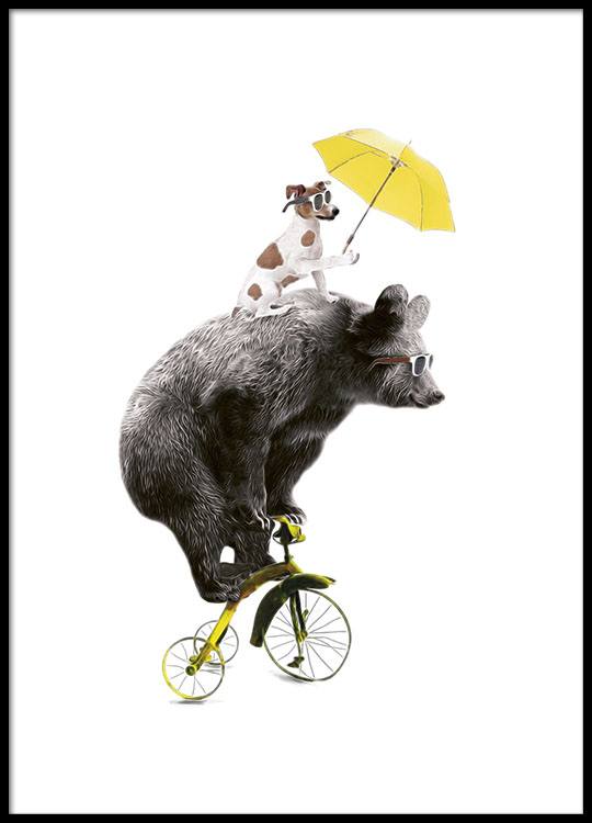 Witziges Poster mit einem Bären auf einem gelben Fahrrad und einem Hund. Eine Illustration, die etwas Farbe in den Alltag bringt. Macht sowohl alleine als auch als Teil einer Bilderwand mit anderen Plakaten eine gute Figur. Das Poster passt perfekt ins Wohnzimmer oder ins Kinderzimmer. Kaufeeinen Rahmen zu deinem Poster und dein Wandkunstwerk ist komplett! 7830-4