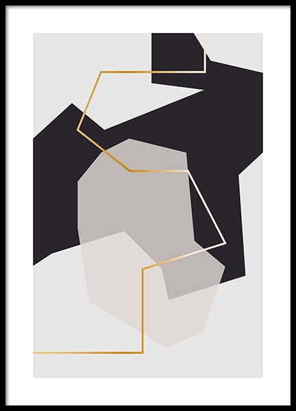 – Illustration graphique avec des formes en gris ressemblant à des fragments, avec une bordure dorée au milieu Illustration graphique aux formes abstraites en gris, beige et noir avec une bordure dorée au milieu (pas de feuille d’or). Cette affiche rendra aussi bien seule que dans une plus grande décoration murale. Si vous êtes à la recherche d’un duo parfait, cette affiche se marie à merveille avec Abstract Fragments No2. 11996-4