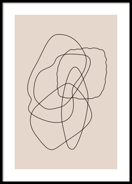 Illustration graphique avec des lignes noires formant une arche à l'envers avec une figure noire en dessous, le tout sur fond beige gris. La structure de couleur de cette affiche mélange le design moderne avec de petites touches rétro !