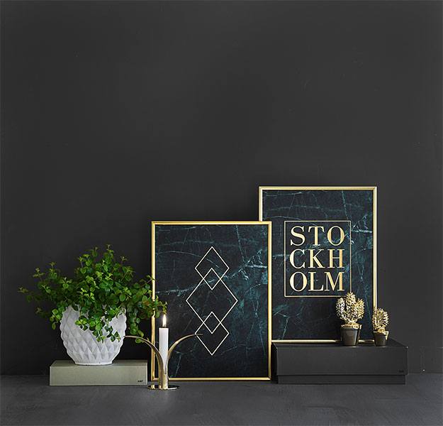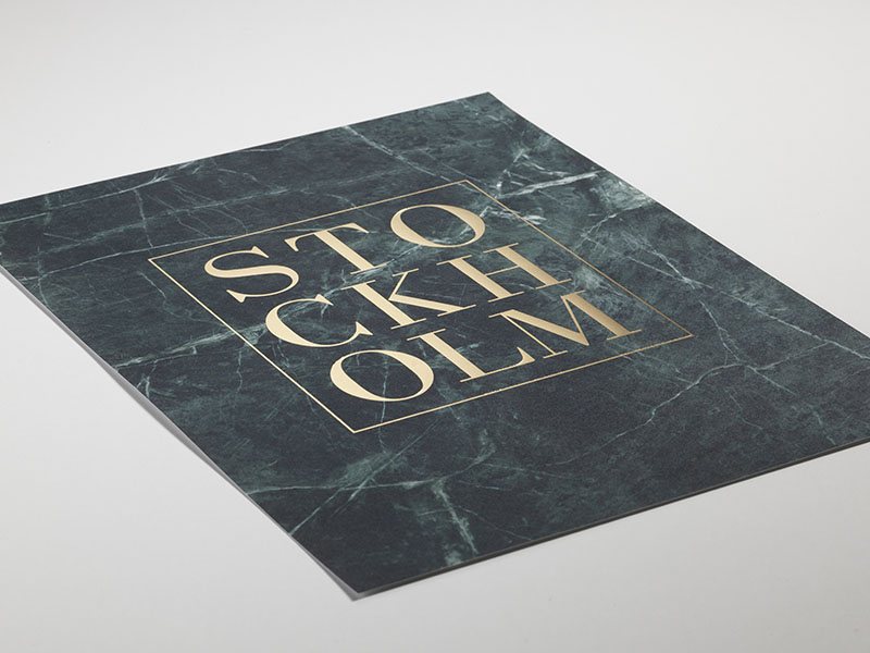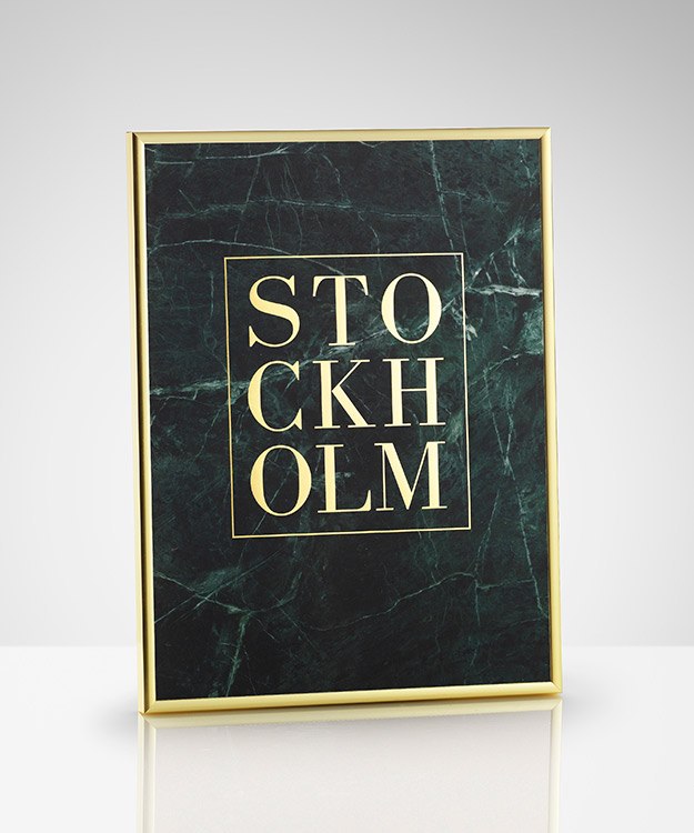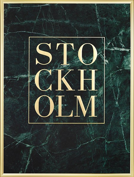 – « Stockholm » imprimé en feuille d’or avec un fond en marbre vert
