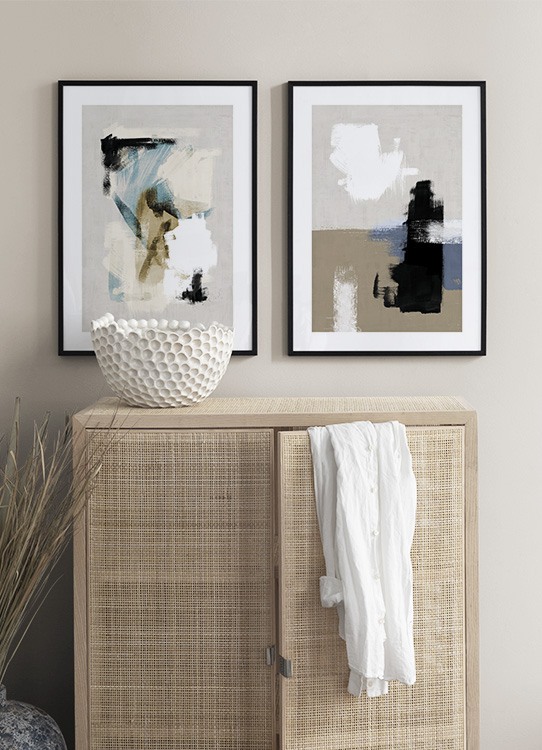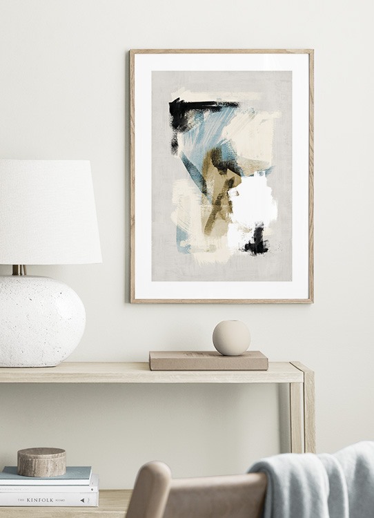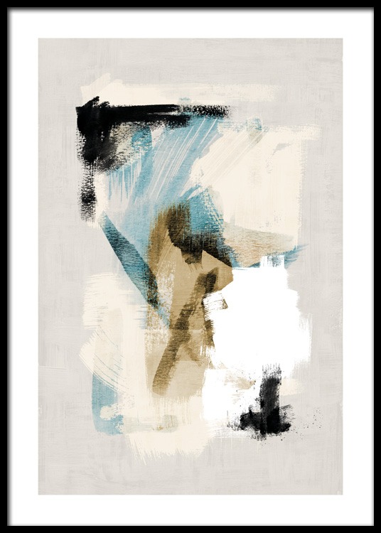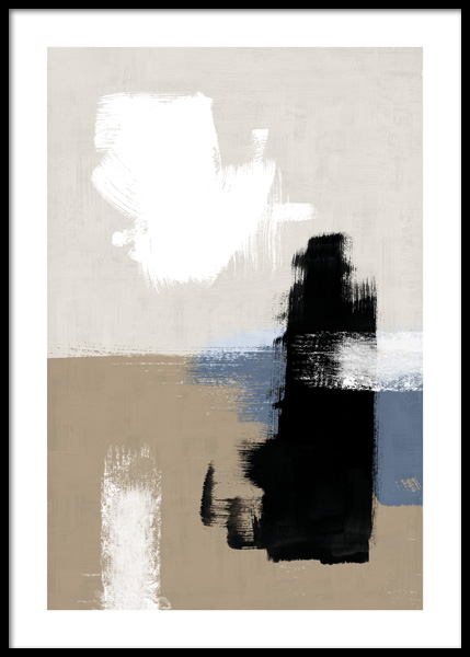 Motivi Handpicked Dipinto astratto in blu, bianco, beige e nero, su sfondo beige che riproduce la struttura del colore dell’opera originale. Le tonalità tenui abbinate a un tocco di blu al centro creano una combinazione perfetta! Inoltre, questo poster si abbina perfettamente ad Abstract Brushes No2.
