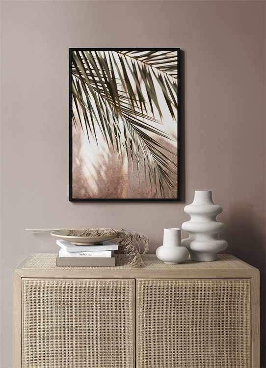 - Primo piano di foglie di palma e la loro ombra su sfondo rosa Fotografia di una palma e la sua ombra su un muro di cemento rosa. Creati con grande estro e attenzione ai dettagli, gli edifici tradizionali di Marrakech sono davvero speciali. Questo poster fa parte di Studio Amara, una collezione di fotografie scattate da Desenio Design Studio a Marrakech. 14219-4