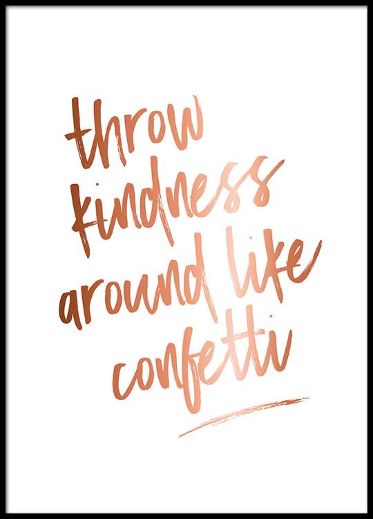 – Poster con il testo "Throw kindness around like confetti" scritto in color rame su sfondo bianco