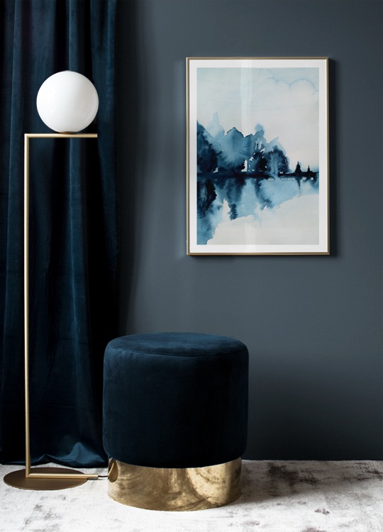 Motivi Handpicked Gradevole poster con soggetto naturale dipinto ad acquerello. Questo elegante soggetto artistico in blu con alberi riflessi è particolarmente indicato come decorazione per il soggiorno. Decora la tua abitazione con straordinari soggetti artistici per aggiungere il tuo tocco personale!