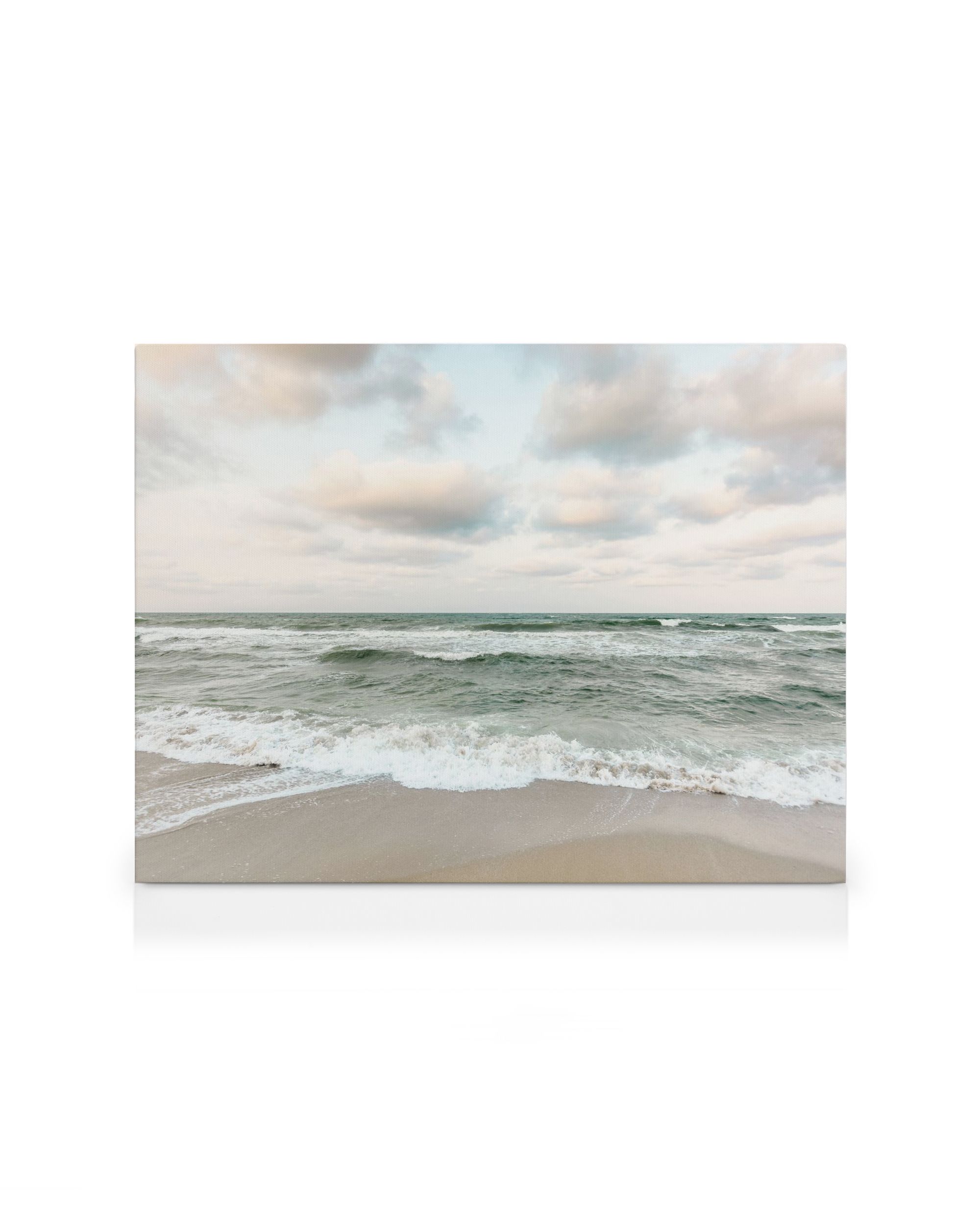 Fotografie, die ein blaugrünes Meer zeigt. Am Himmel darüber Wolken. Mit einigen dezenten Farbtupfern an deinen Wänden bringst du einen frischen Look in dein Zuhause. Meermotive sorgen außerdem für eine ruhige Atmosphäre in deinen Räumen.