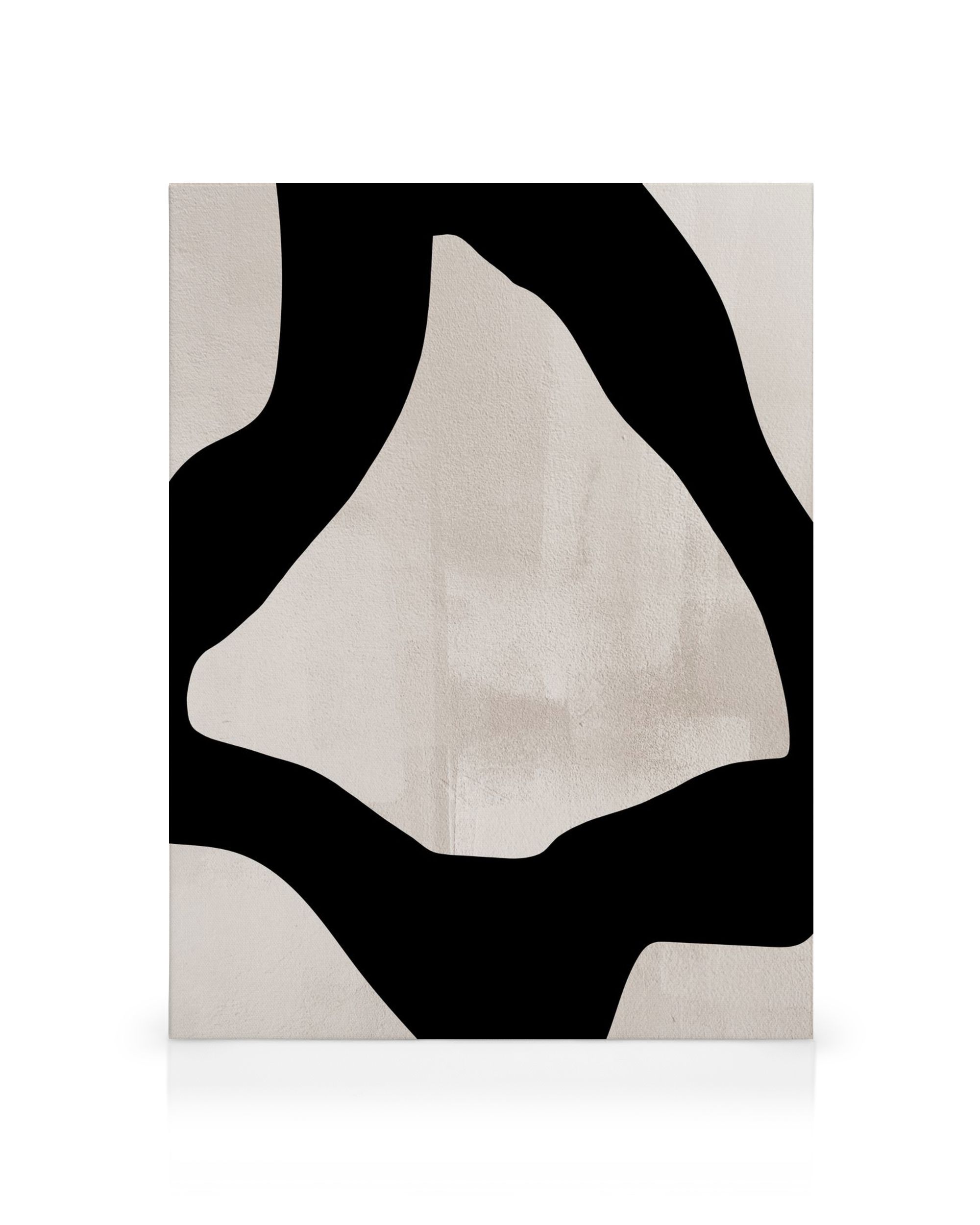 À partir de 21.57 CHFCette toile abstraite présente une forme noire irrégulière avec des bords incurvés sur un fond beige, créant une pièce moderne et élégante de décoration murale pour votre maison.