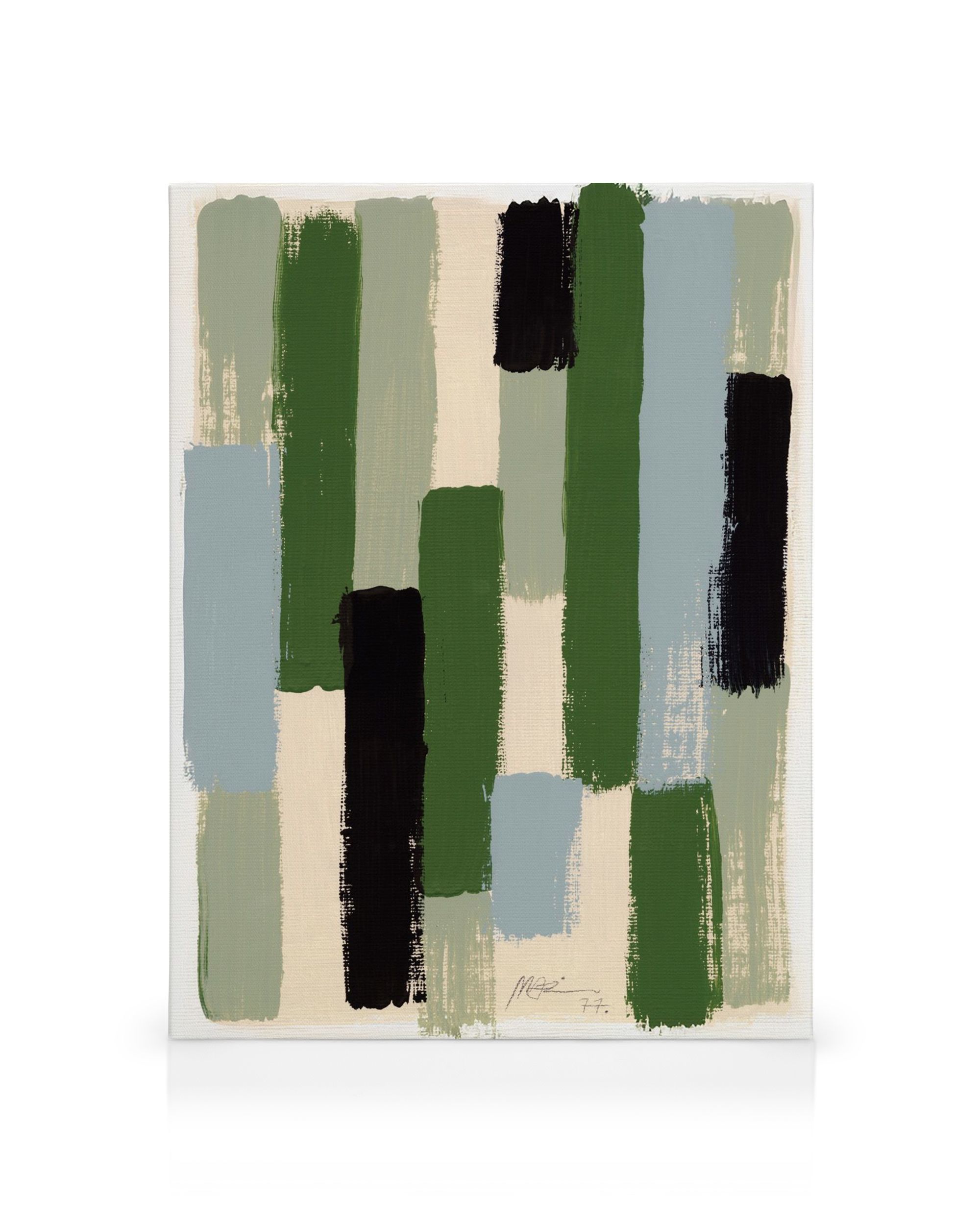 À partir de 33.56 CHFDes coups de pinceau expressifs en vert, noir et bleu se superposent sur cette toile, créant un effet dynamique et saisissant.