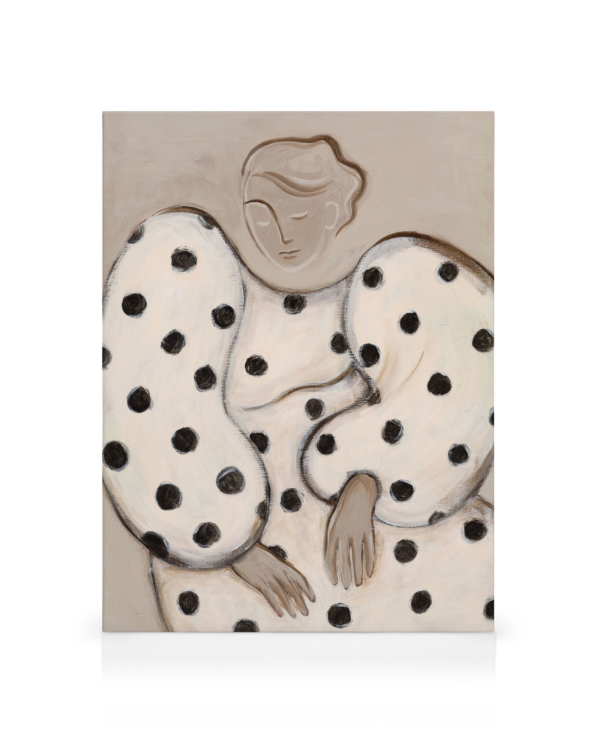 Une toile élégante beige à pois noirs. Le tableau parfait pour la décoration de votre maison.