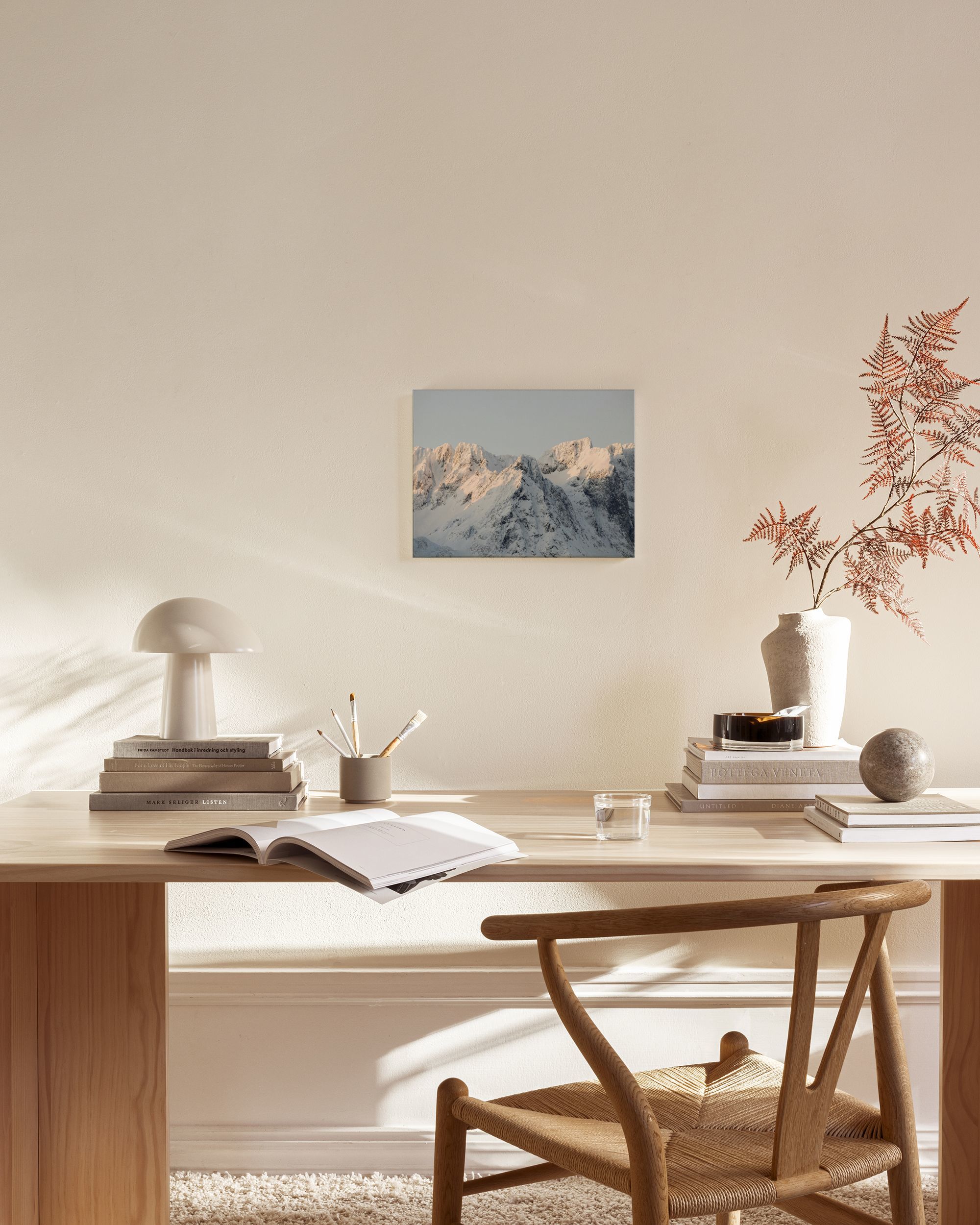 À partir de 36.95 CHFUne toile minimaliste présentant des crêtes de montagnes dans des nuances apaisantes de gris et de blanc. Un tableau parfait pour créer une atmosphère paisible dans n'importe quelle pièce.