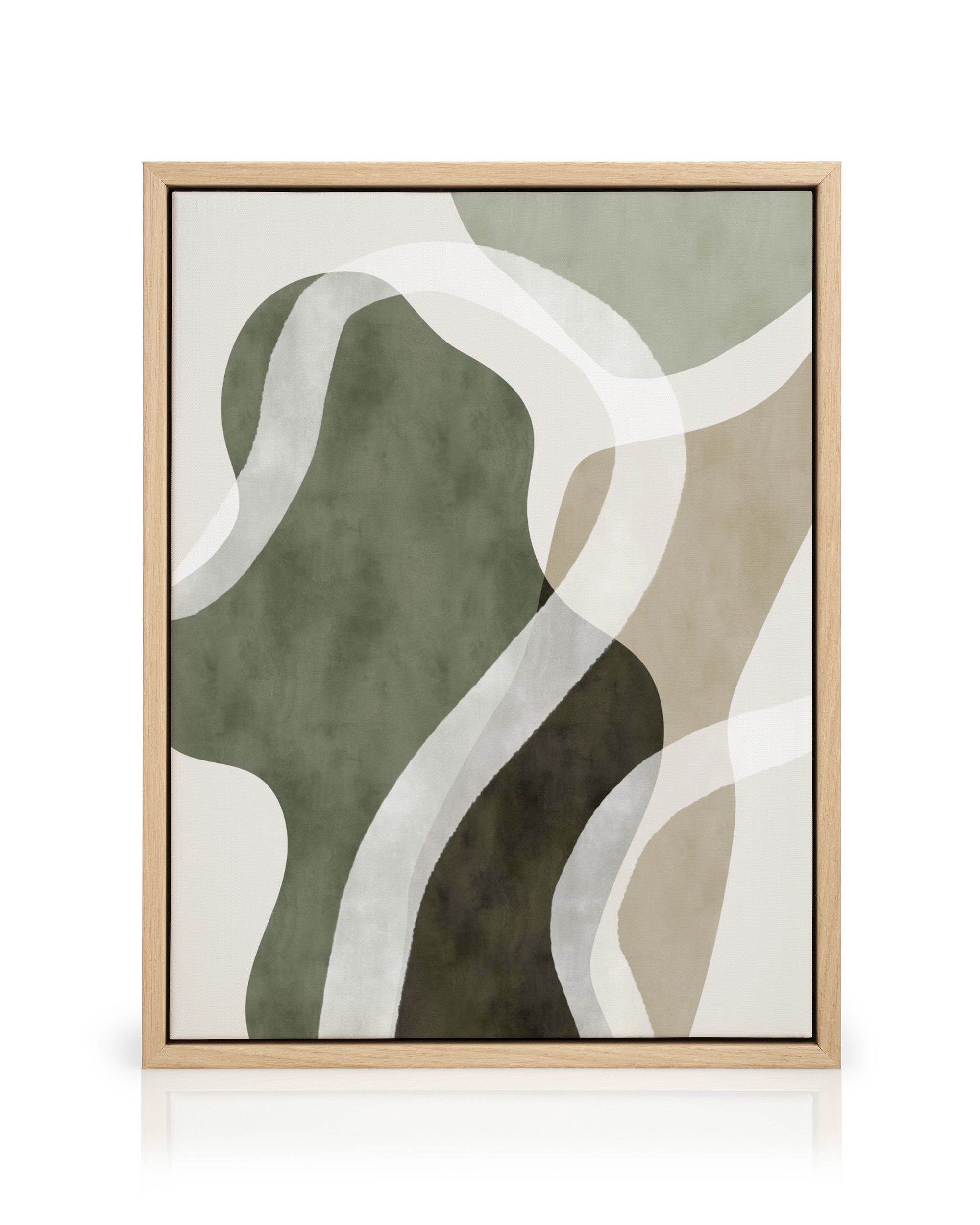Galleria a parete con quattro quadri che creano un'atmosfera accogliente. I colori beige e verdi si abbinano perfettamente per decorare la tua casa.