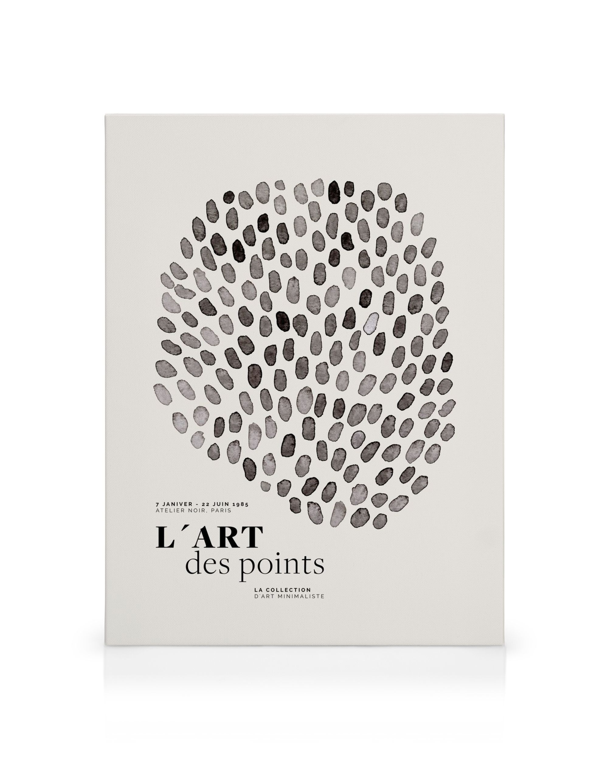 Da CHF 33.56Stampe su tela con forme ovali nere che formano un grande cerchio su uno sfondo bianco, con testo in francese sotto.