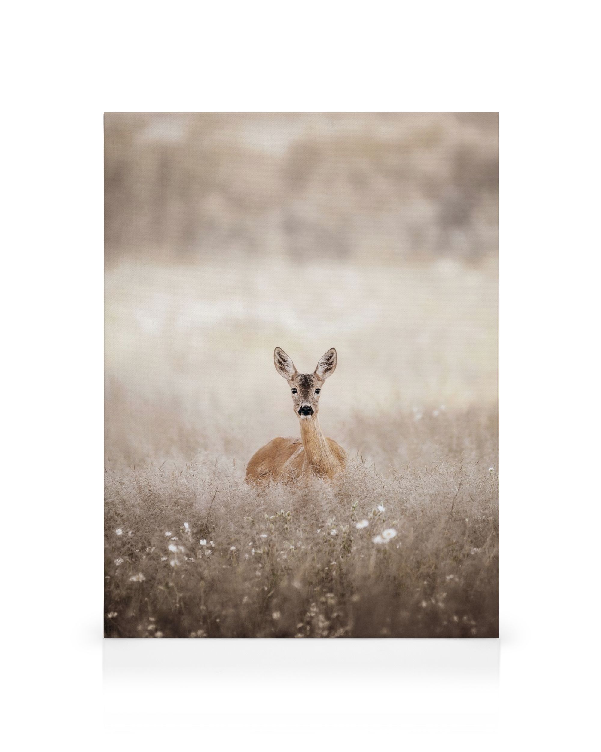 Da CHF 33.56Una Stampa su tela di un cervo parzialmente nascosto in un campo di erba alta e pallida. Gli occhi scuri del cervo, il naso nero e le grandi orecchie risaltano sui toni morbidi bianchi e marroni dello sfondo sfumato con alberi, creando un bellissimo pezzo di arte murale per la tua Galleria a parete.