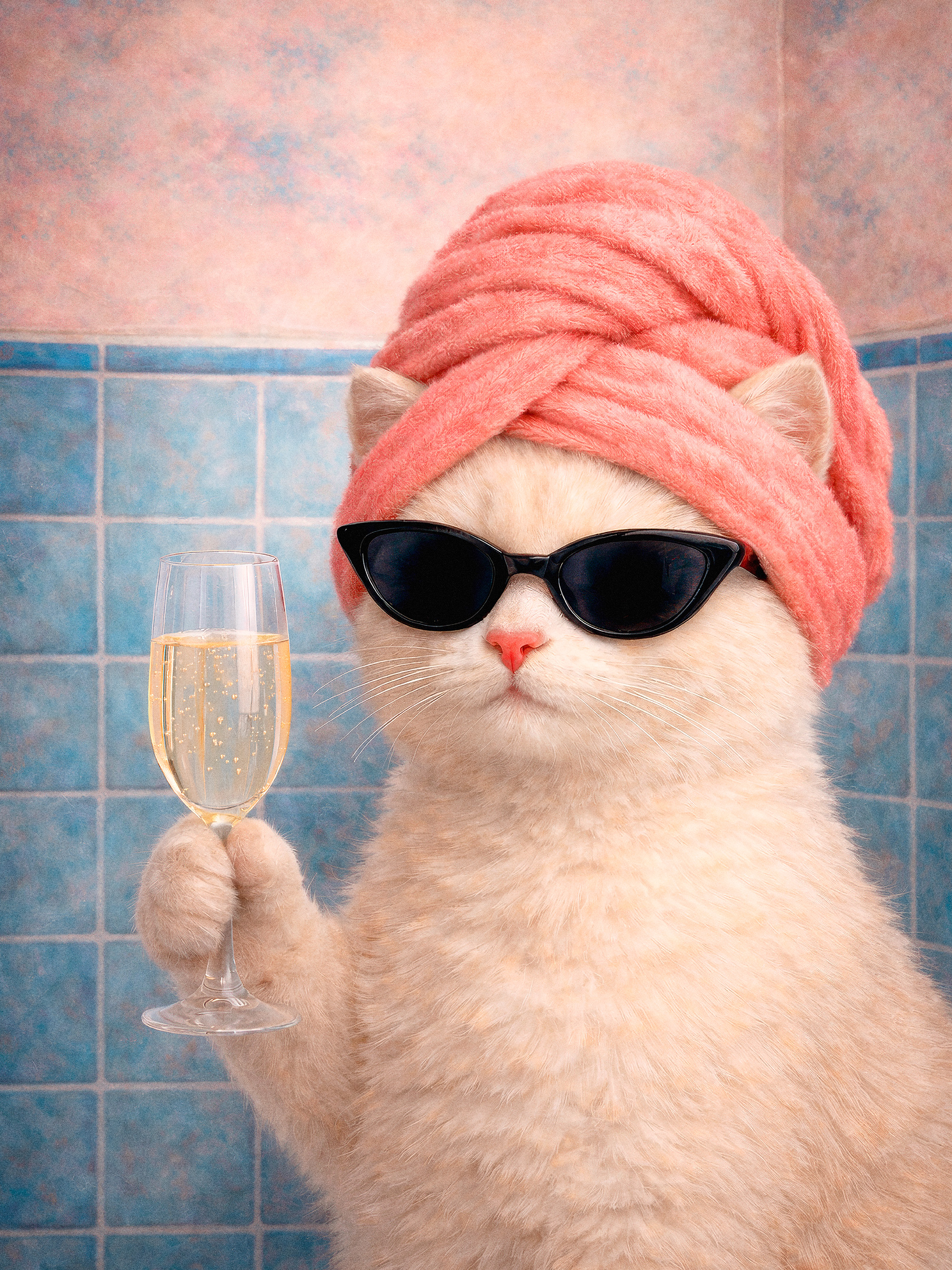 Ab CHF 19.22Ein lustiges Poster einer flauschigen Katze mit Sonnenbrille und pinkem Handtuch auf dem Kopf, die ein Glas prickelndes Getränk hält. Perfekte Wanddekoration, um deinem Zuhause eine verspielte Note zu verleihen!